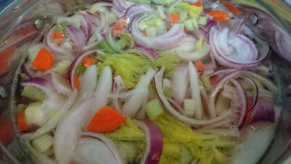 素高汤是:洋葱、胡萝卜、西芹,熬出的汁水。平时熬了,速冻在冰箱,想用就用。