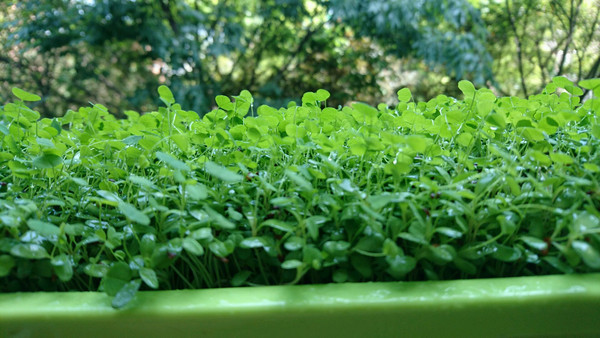 自己种的苜蓿苗,可以收获了,长出两片真叶了。