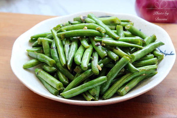 豆角切成长度差不多的小段,清洗干净,葱,蒜洗净切碎