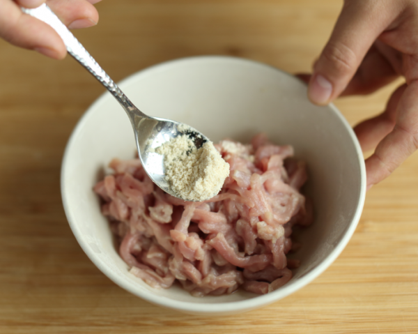将猪里脊肉洗净,切成丝,加入料酒、淀粉、家乐鸡粉充分拌匀,腌制10分钟。
