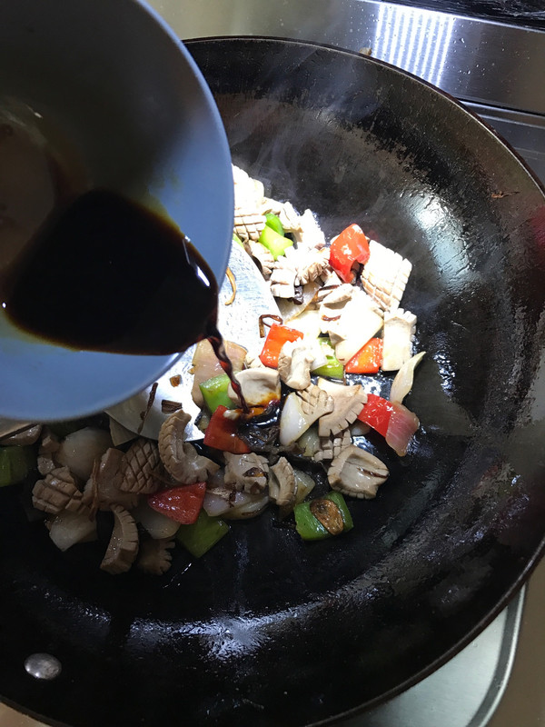 加入调好的酱汁,翻炒片刻。根据个人口味,如果觉得淡可以加少许盐。出锅