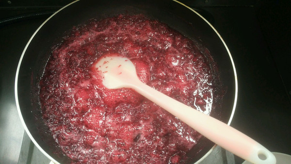 看,已经熬出果汁了,继续小火慢熬,水分蒸发,果酱变浓即可