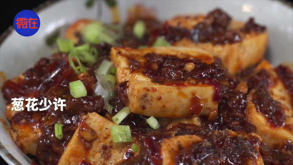 放入豆腐,水淀粉(水与淀粉的混合溶液)勾芡,收汁