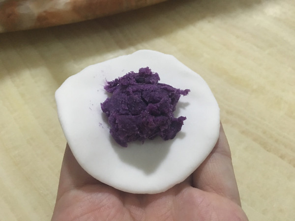 蒸熟的紫薯加适量白砂糖搅拌均匀