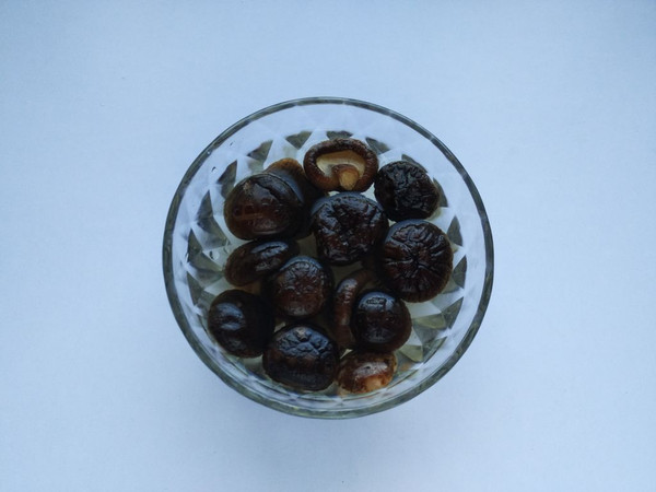 加入香菇、黄酒、生抽、老抽翻炒出香味关火;