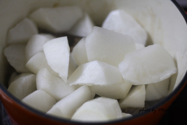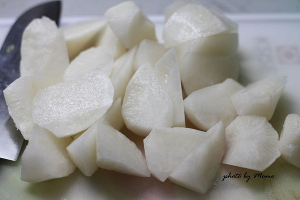 萝卜改刀切块,我喜欢下刀后用力掰开