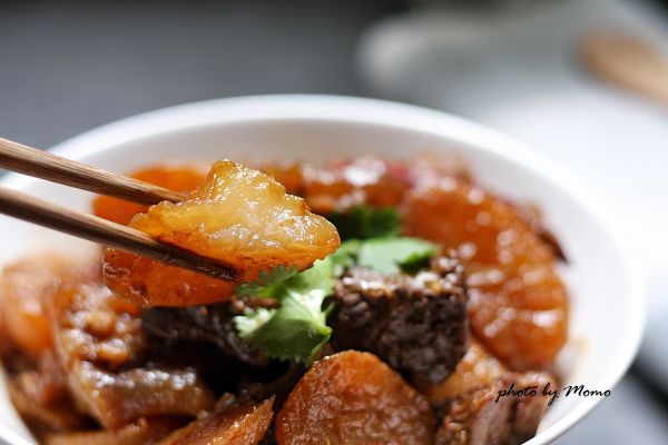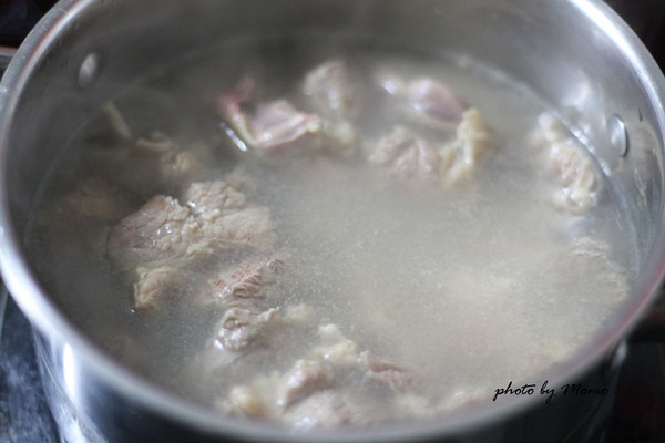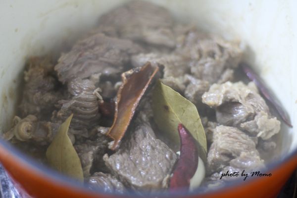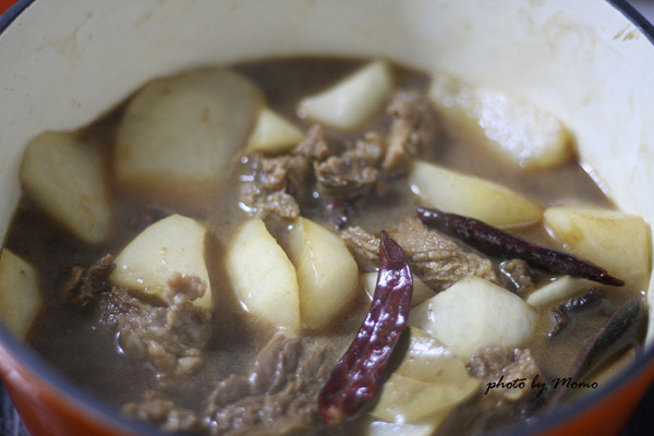 加入切块的娘娘牌牛大筋翻拌10来下,关火盖盖,焖4-5分钟即可