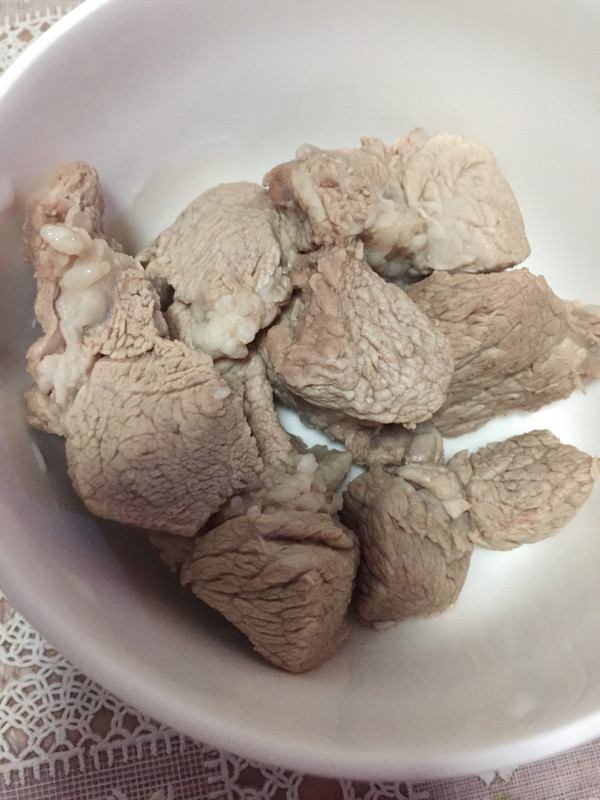 排骨在开水中煮一会,冷水洗净备用。