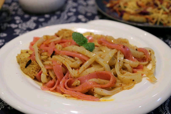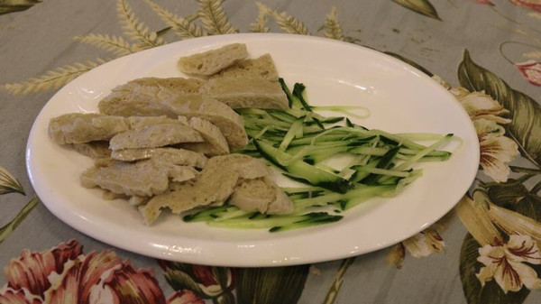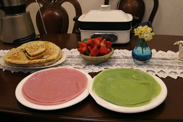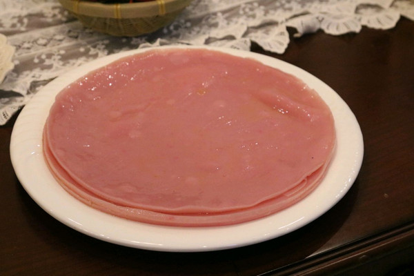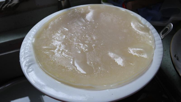 这个快熟的时候,可以把冷却的凉皮放在一个干净的盘子中,刷油,在用罗做另外一个