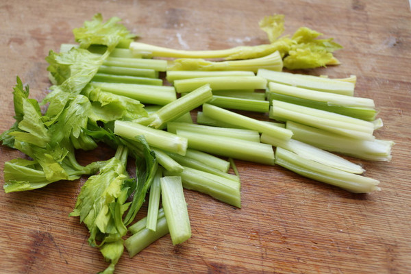 芹菜切段,最后时候放入,香气很好闻。
