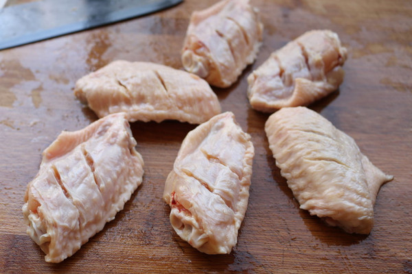 鸡翅表面打花刀。