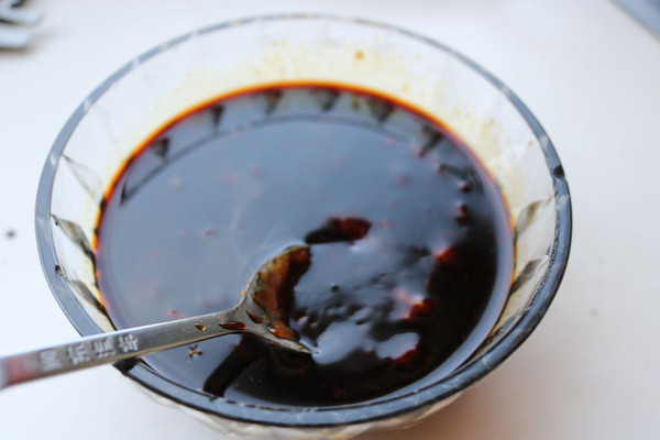 调一碗焖汁,我用了蚝油,番茄酱,老抽,生抽,豆瓣酱,蒸鱼豉油,白糖,分量差不多1:1,再加适量水,搅拌均匀。盐就酌情加吧,酱类都有盐味,差不多就够了。