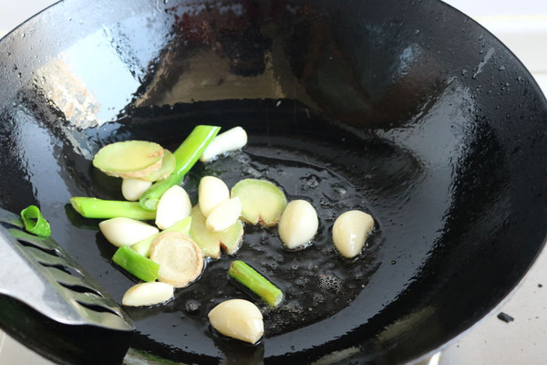 炒锅放少许油,下入葱姜蒜爆香。