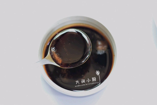 ②这个时候自己做叉烧酱,将糖4大勺,生抽4大勺,料油3大勺,蚝油2大勺,蜂蜜3大勺,放不粘锅小火煮至浓稠