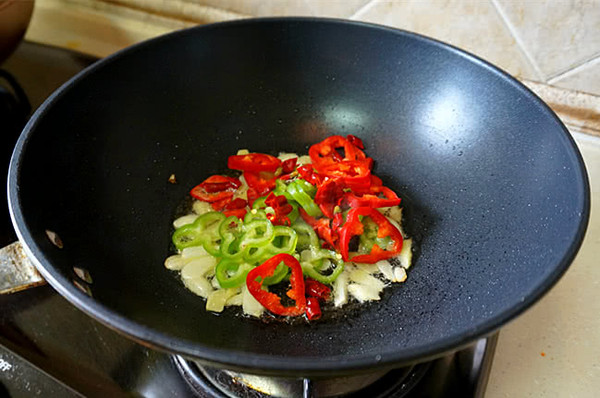 然后就是青红椒片【我喜欢吃辣的所以放了些辣的干辣椒】