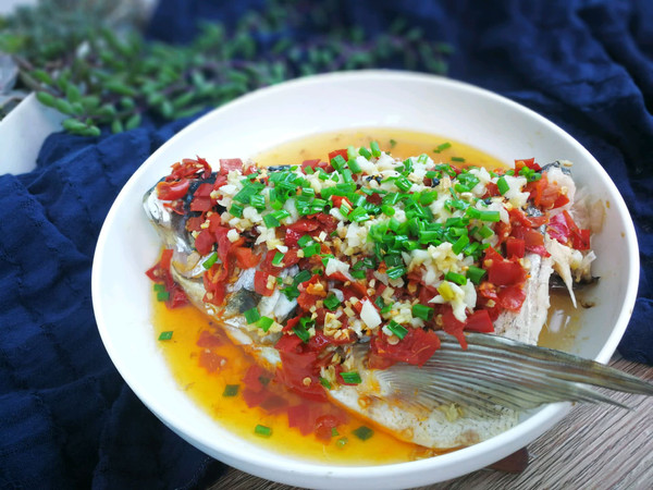 剁椒上再铺上刚刚的熟蒜蓉,再入蒸锅中火蒸15分钟左右