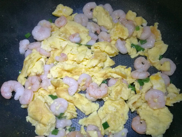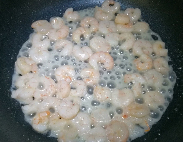 热锅放油,放入虾仁,翻炒约1分钟至变色。