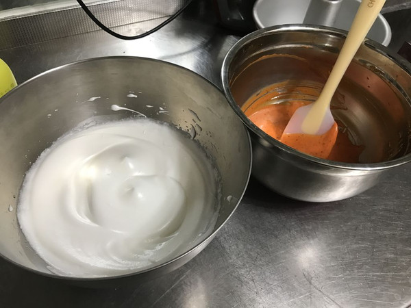 现在就可以准备混合蛋白霜和蛋黄糊了
