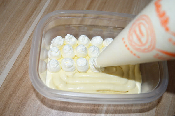 将淡奶油,奶酪豆乳分别装入裱花袋中,放冰箱冷藏备用;