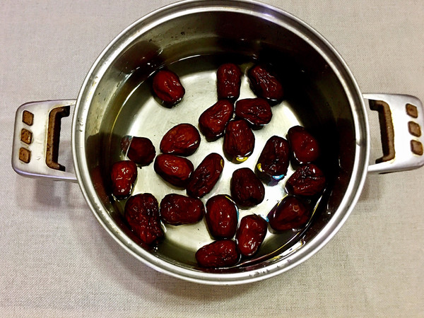 将煮好的红枣放至不烫手,去核(煮软的红枣很容易去核),切碎。