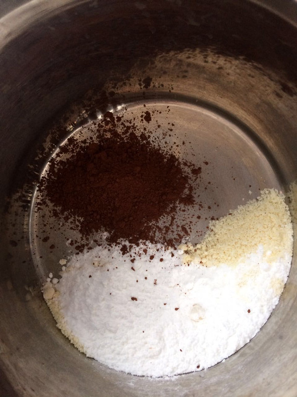 筛入低粉用刮刀快速搅拌均匀,看不到干粉