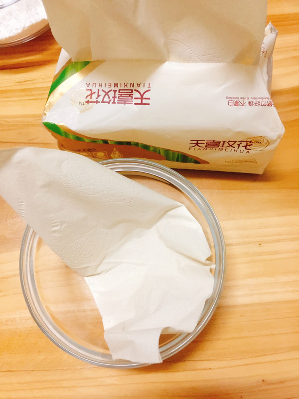 将蛋清、蛋黄分离出来,注意分离时不能让蛋清沾到一丝蛋黄(盛蛋清的碗必须保证无油无水)