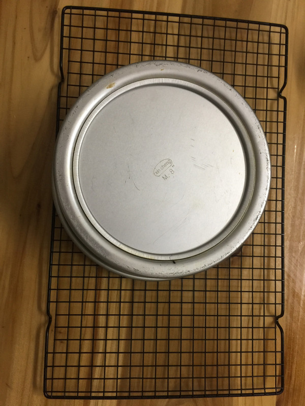 将烤好蛋糕取出后马上轻摔两下,扣在烤网上冷却