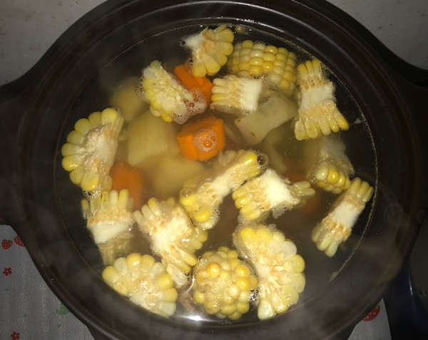 盖盖,按下快速沸腾键,十分钟后自动熄灭,煲1.5小时就可以了