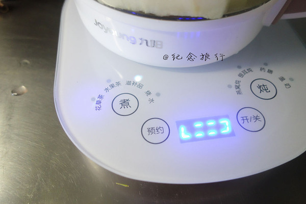 倒入适量水大致淹没住梨块就可以了,这里差不多500ml是最低水位