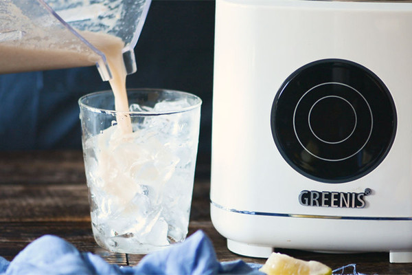 将雪梨、石榴和水依次放入料理杯中