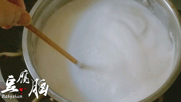 用一根筷子在豆浆中划圈即可消除泡泡。煮开后再小火煮8分钟后关火。