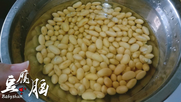 干黄豆加水浸泡至充分涨发。