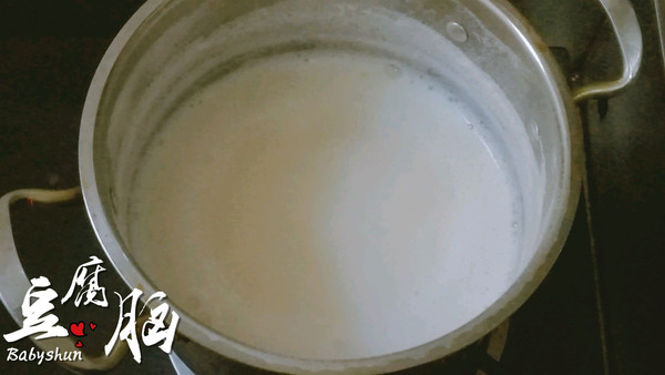 将生豆浆过滤至汤锅中。大火煮开。