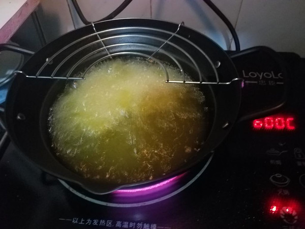 隔天,取一个小炸锅,加入适量的油加热。