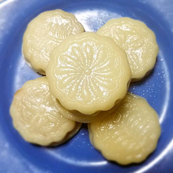 玉米淀粉和糯米饭混合,糖加开水融化加入粉里