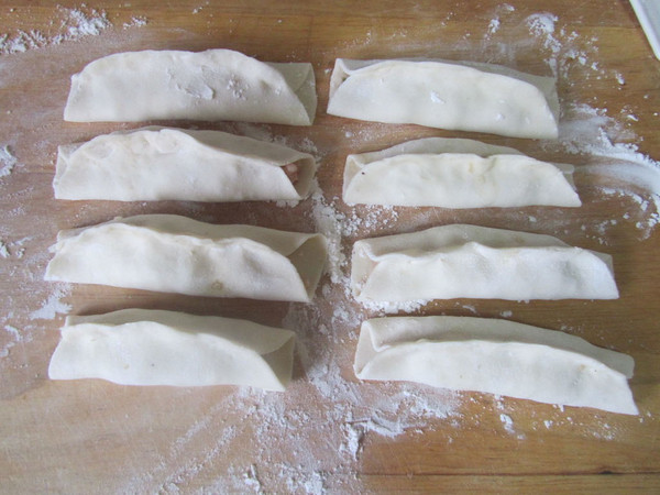 将面片的上端捏紧, 前后不用封口;
