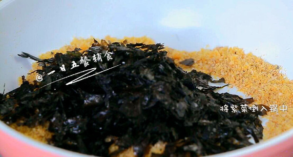 最后将紫菜碎倒入锅中。