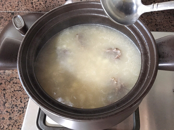 待煲至汤水渐渐变成乳白色,芡实颗粒饱满时。