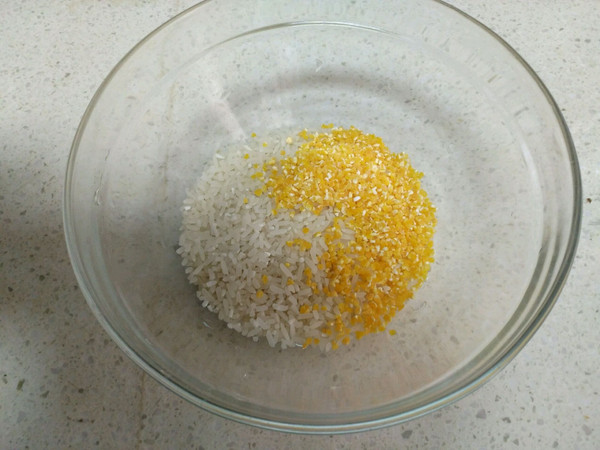 把玉米和大米混合,然后用清水洗洗。