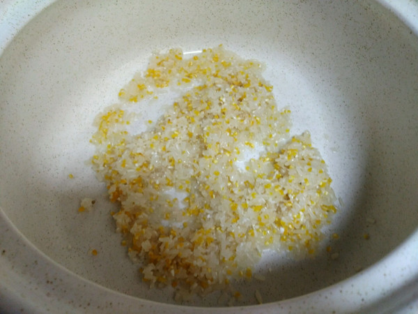把玉米渣和大米一起放在小碗里