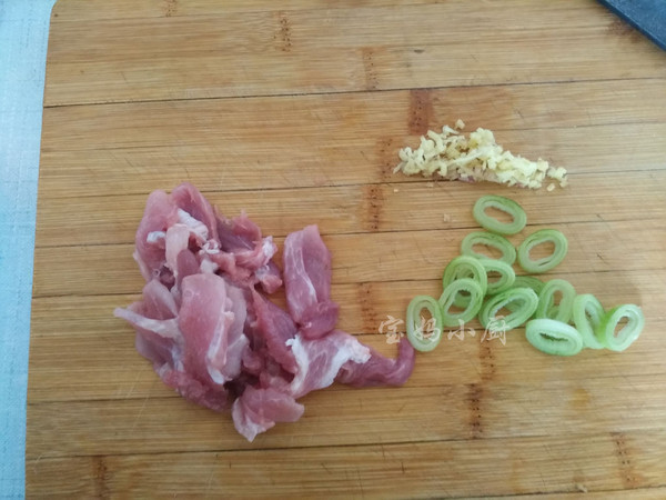 肉片放入碗里,加入葱姜末、生抽酱油、料酒、玉米淀粉拌匀,腌3分钟(这样处理的肉鲜嫩入味)