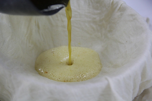把煮好的黄油水用过滤布,过滤气泡和杂质