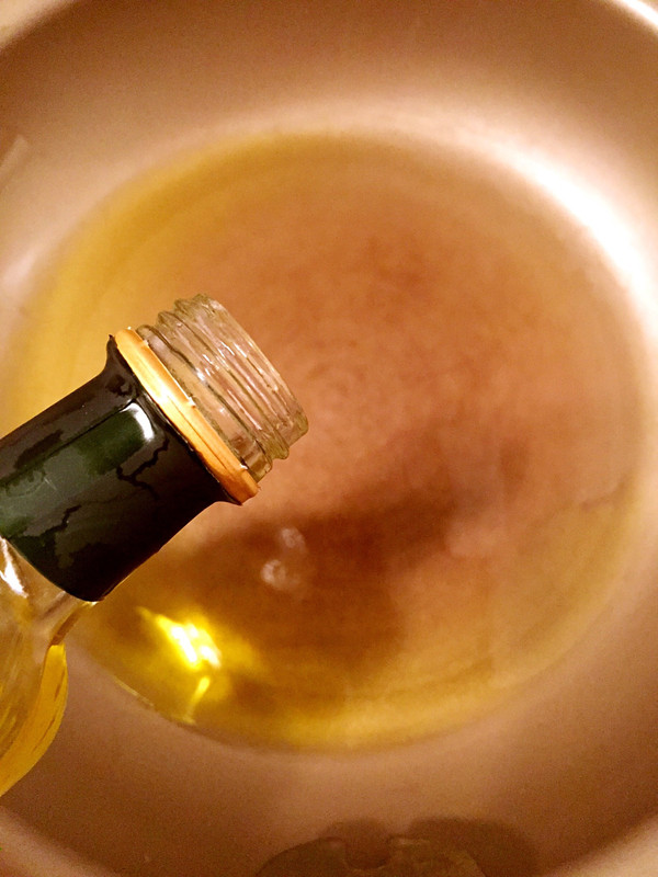 直接用煎胡萝卜的油准备做酱汁。放入蒜蓉爆香
