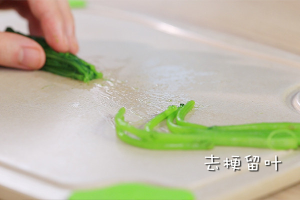 这个时候,我们来处理蔬菜。起锅烧水,水开后放入茼蒿焯水1分钟。
