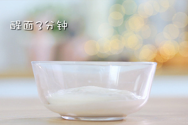此时,面团也醒好啦。用3根筷子左右划动10下。