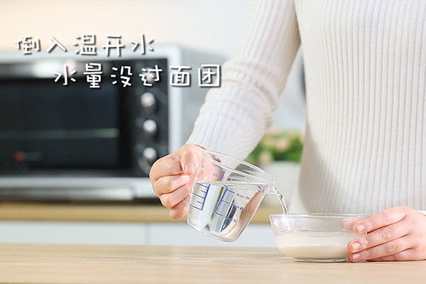 再倒入适量40度温水,注意水量只需没过面团顶部即可,再次醒面20分钟。