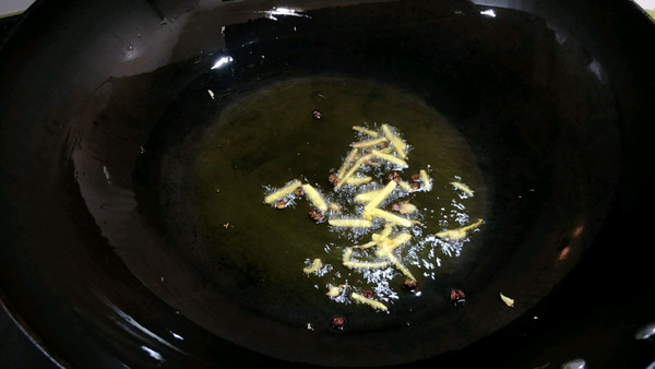 起油锅,倒入适量的油烧热,放入姜,花椒爆香