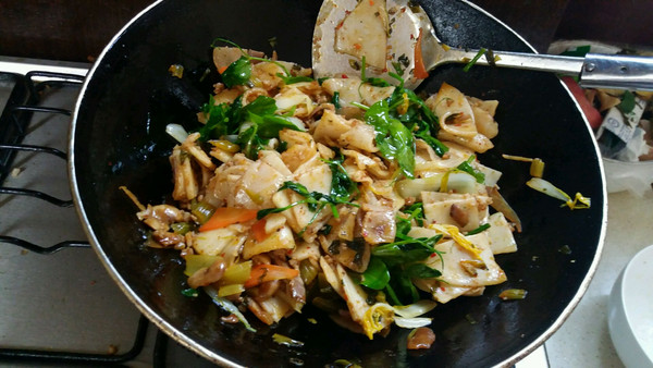 炒至饵块变软,尝尝味,加适量酱油和盐。起锅。