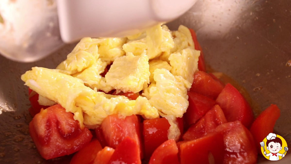加入蛋块,调入适量糖,稍微翻炒均匀。