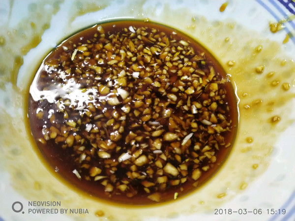 取出一半的蒜丁,加入所有调料,搅拌均匀成酱汁。
